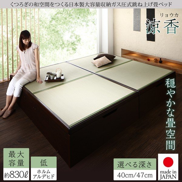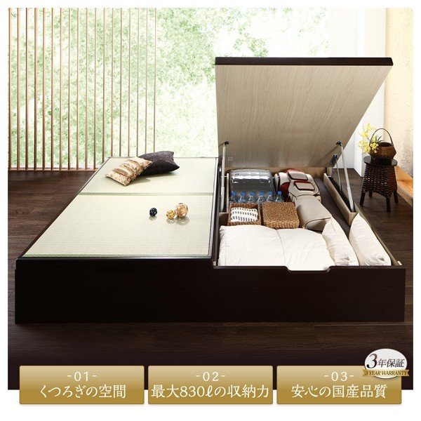 kag-49458 セミダブルベッド 一人 フレーム 跳ね上げ式 ガス圧 ベッド下 収納付き 大容量 畳 硬め 布団対応 布団用 腰痛対策 通気性 カビ 湿気 和室 ヘッドレス アジアン