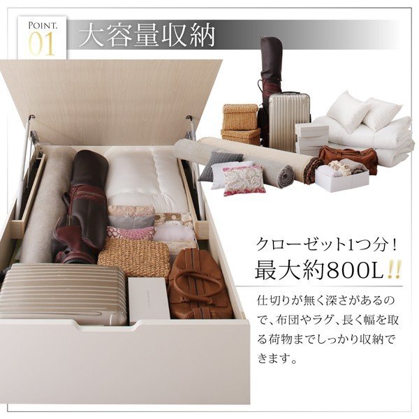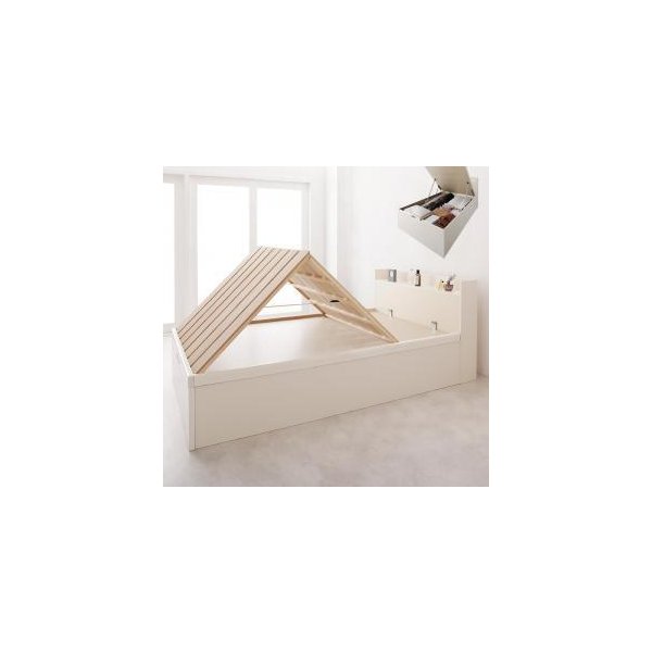 kag-49470 セミダブルベッド 一人暮らし フレーム 跳ね上げ式 ガス圧 ベッド下 収納付き 大容量 宮 棚 携帯 収納 携帯 スマホ 充電 コンセント布団可 すのこ 通気性 カビ