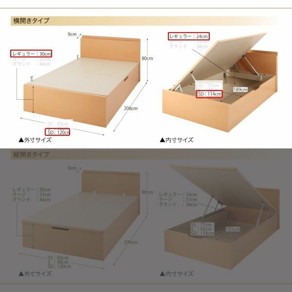 セミダブル:(約)幅120x長さ209x高さ80cm