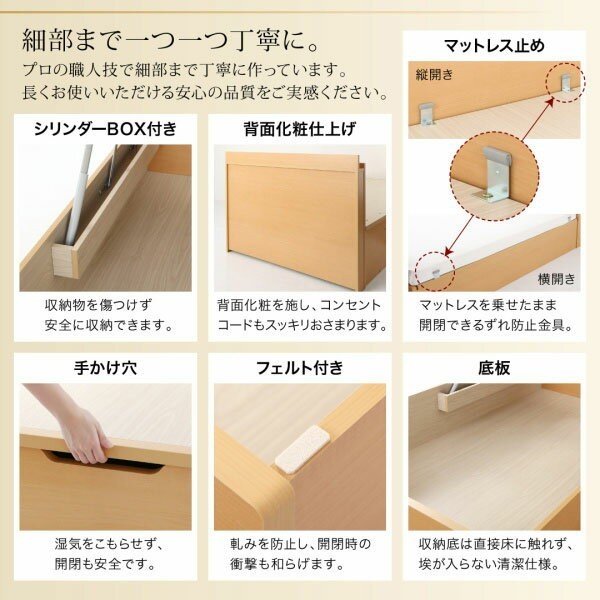 ※セミシングル・シングルは35kg以下、セミダブルは40kg以下のマットレスをご利用ください。重量が上記以下であっても、マットレスを別でご用意いただいた場合の開閉の動作については保証いたしかねます。