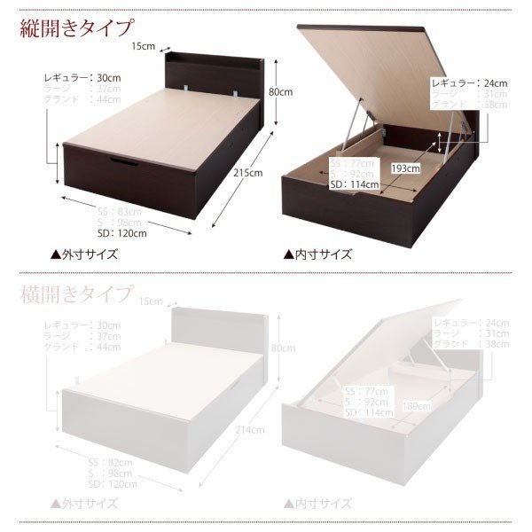 kag-50671 セミダブルベッド 一人暮らし SD マットレス付き 跳ね上げ式ベッド ガス圧 ベッド下 収納付き 大容量 宮 棚 携帯 リモコン 収納 コンセント スマホ 充電 電気