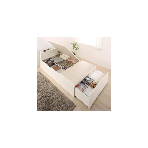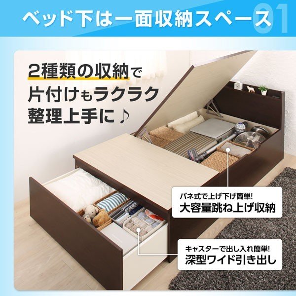 kag-52070 セミダブルベッド 一人暮らし フレーム 跳ね上げ式 ベッド下 収納付き 大容量 宮 棚 携帯 収納 コンセント スマホ 充電 布団可 布団収納 フラット床板 箱型