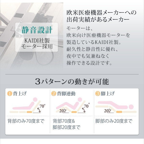 kag-52212 セミダブルベッド 一人 フレーム 電動リクライニングベッド 背もたれ 介護 ヘッドボード クッション 宮 棚 携帯 収納 照明 ライト コンセント スマホ 充電 脚 足