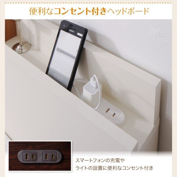 kag-52265 セミダブルベッド 一人暮らし マットレス付き ベッド下 収納 大容量 高い 床下 スペース 全面 連結可 つなげる 宮 棚 携帯 コンセント スマホ 充電