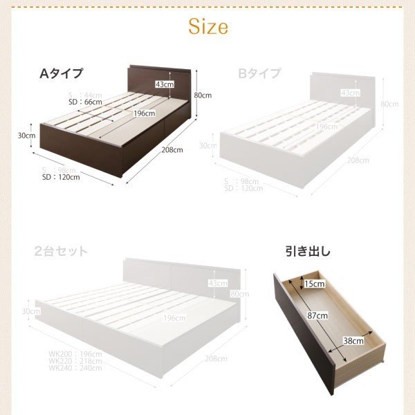セミダブル:(約)幅120x長さ208x高さ80cm