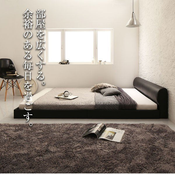 セミダブルベッド 一人暮らし SD マットレス付き ローベッド ロータイプ フロア 低床 低い 背もたれ ヘッドボード ヘッドレスト 読書 クッション 寄りかかる すのこ 通気性 除湿 カビ レザー ゴージャス 高級 豪華 ゴシック デザイナーズ ホテル モダン メンズ 姫系