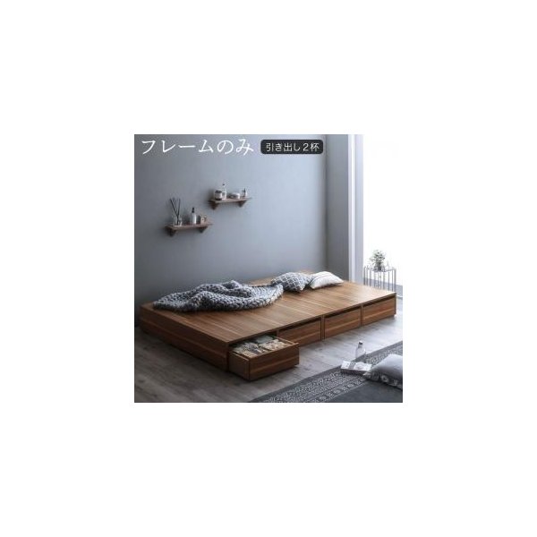 kag-53294 セミダブルベッド 一人暮らし フレームのみ チェスト ベッド下 収納 引き出し 大容量 ヘッドレス 布団可 フラット床板 箱型 ローベッド 低い ヴィンテージ