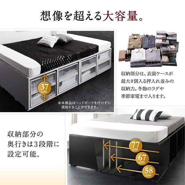 kag-53312 セミダブルベッド 一人暮らし フレームのみ ベッド下収納スペース 高い 床下 大容量 宮 棚 携帯 コンセント スマホ 充電 布団可 フラット床板 箱型 ヴィンテージ