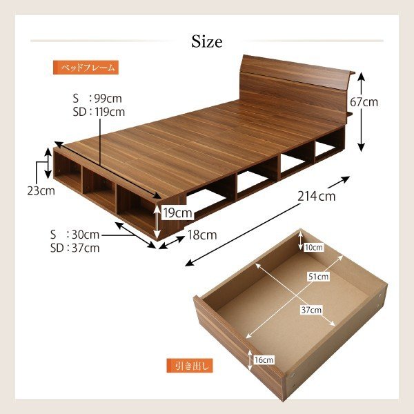 (フット側)棚有効内寸:シングル:(約)30x18x19cm セミダブル:(約)37x18x19cm
