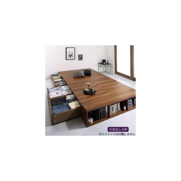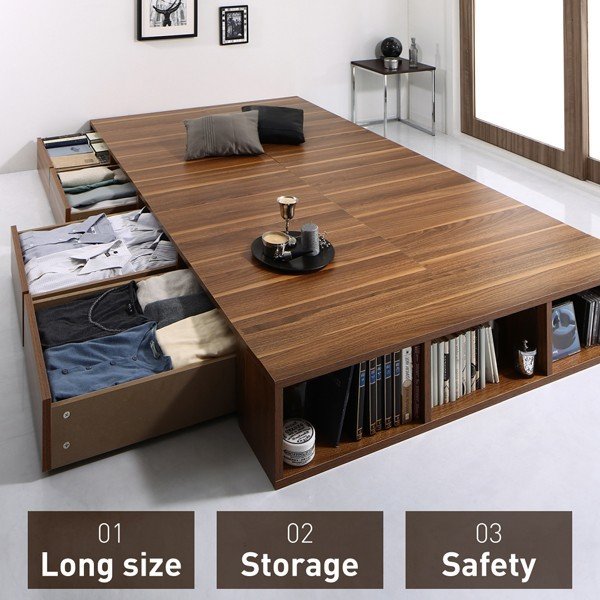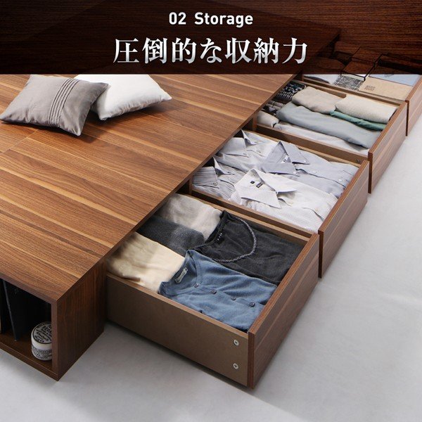 kag-53505 セミダブルベッド 一人暮らし フレーム チェスト ベッド下 収納 引き出し 大容量 ロング ヘッドレス 布団可 フラット床板 箱型 ローベッド 低い ヴィンテージ