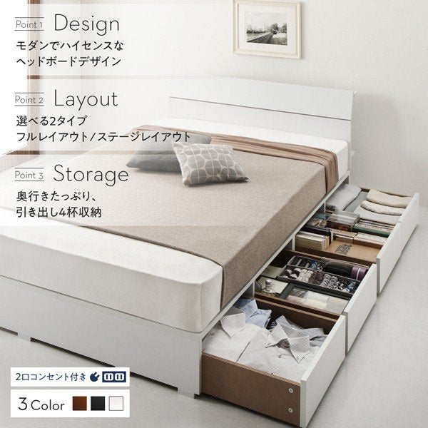 標準ポケットコイルマットレス付き 引き出し4個 フルレイアウト セミダブル フレーム幅120