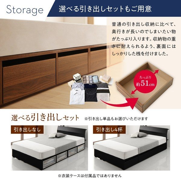 プレミアムポケットコイルマットレス付き 引き出し4個 フルレイアウト セミダブル フレーム幅120