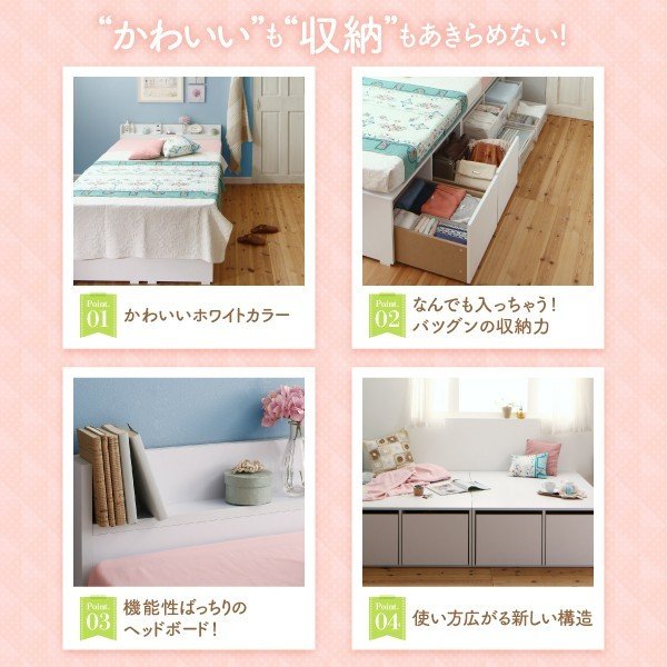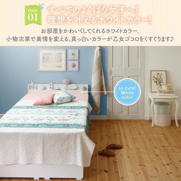 kag-53676 セミダブルベッド 一人暮らし マットレス付き ベッド下収納スペース 高い 床下 大容量 宮 棚 携帯 コンセント スマホ 充電 布団可 フラット床板 箱型 白
