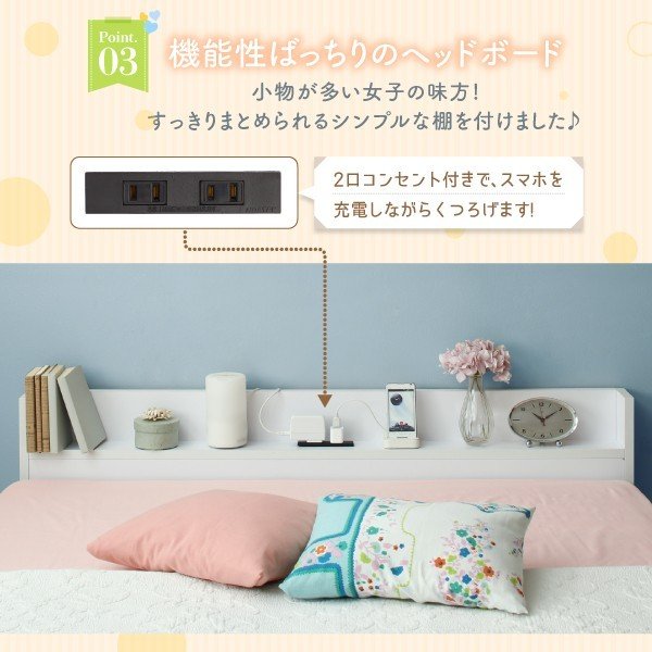 kag-53680 セミダブルベッド 一人暮らし SD フレーム チェスト ベッド下 収納 引き出し 大容量 宮 棚 携帯 リモコン コンセント スマホ 充電 布団可 フラット床板 箱型 白