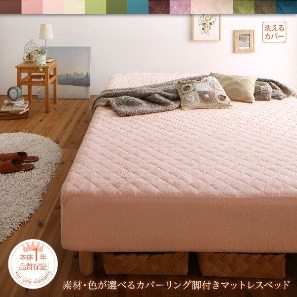 kag-53738 セミダブルベッド 一人暮らし SD 脚付き マットレスベッド ボトム 足付 カバー付き ヘッドレス ローベッド ロータイプ 低い 北欧 おしゃれ モダン アンティーク
