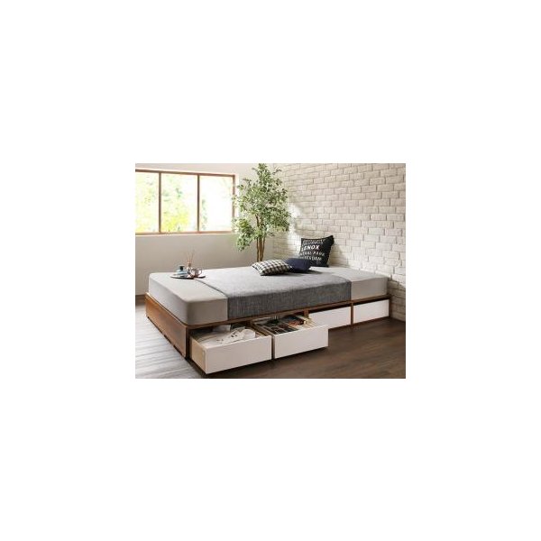 kag-53843 セミダブルベッド 一人暮らし マットレス付き チェスト ベッド下 収納 引き出し 大容量 ヘッドレス 布団可 フラット床板 箱型 ツートンカラー ローベッド 低い