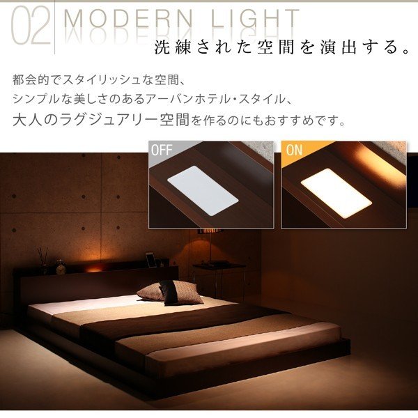 kag-53852 セミダブルベッド 一人暮らし フレームのみ ローベッド ロータイプ 低い 宮 棚 携帯 リモコン 収納 照明 読書 ライト 電気 コンセント スマホ 充電 ヴィンテージ