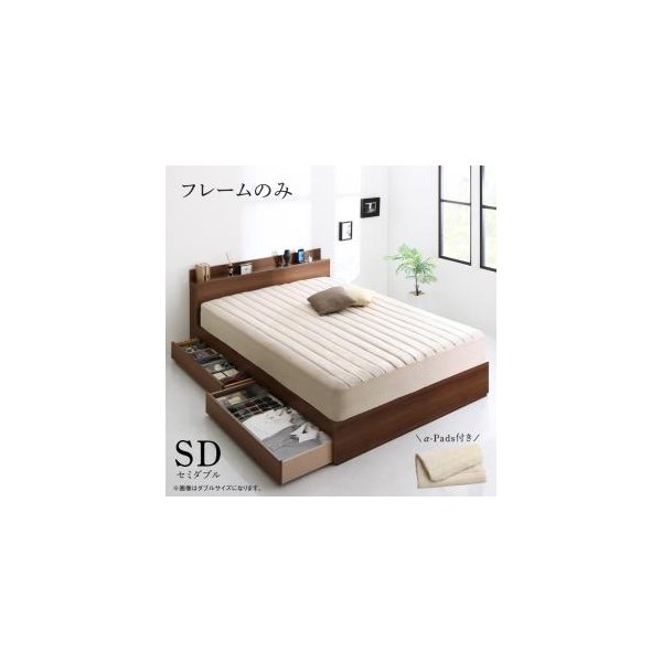 kag-53877 セミダブルベッド 一人暮らし SD フレームのみ チェストベッド ベッド下収納 引き出し 大容量 宮 棚 携帯 リモコン コンセント スマホ 充電 電気 ヴィンテージ