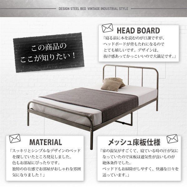 kag-53965 セミダブルベッド 一人暮らし SD マットレス付き パイプベッド アイアン スチール 金属 ヘッドボード 薄型 脚付き 足付 ルンバ ヴィンテージ モダン レトロ