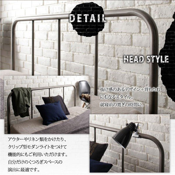 セミダブルベッド 一人暮らし SD マットレス付き パイプベッド アイアン スチール 金属 ヘッドボード 薄型 脚付き 足付 ルンバ 土台 ヴィンテージ メンズ モダン レトロ