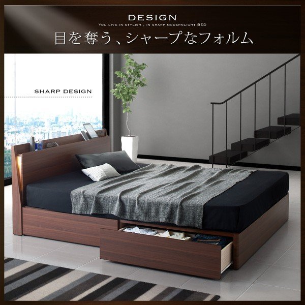 kag-53992 セミダブルベッド 一人暮らし マットレス付き チェスト ベッド下 収納 引き出し 大容量 宮 棚 携帯 照明 読書 ライト コンセント スマホ 充電 ヴィンテージ