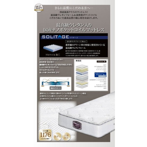 最高級国産ナノポケットコイルマットレス付き 2台セット(S+SD)