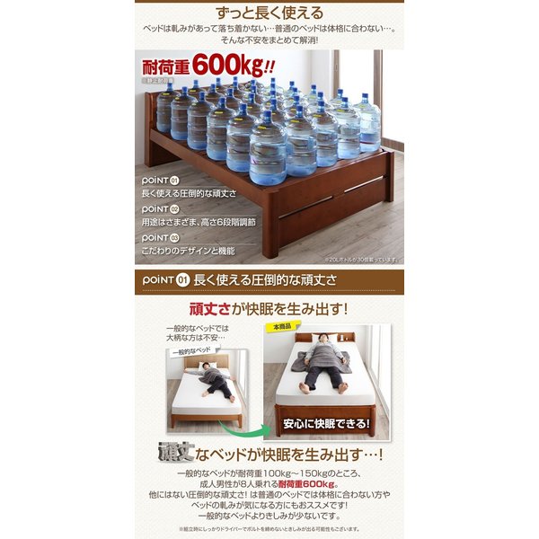 kag-54193 セミダブルベッド 一人 マットレス付 ベッド下 収納スペース 高い 床下 全面収納 高さ調節 ロー 低い 棚 携帯 コンセント スマホ 布団可 すのこ 通気性 カビ 脚