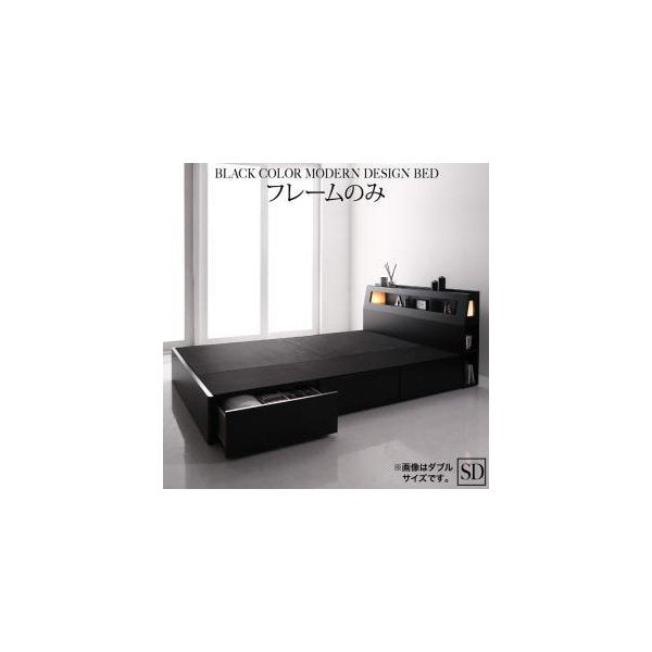 kag-54215 セミダブルベッド 一人暮らし SD フレームのみ チェスト ベッド下 収納 引き出し 大容量 宮 棚 携帯 リモコン 照明 読書 ライト 電気 コンセント スマホ 充電 黒