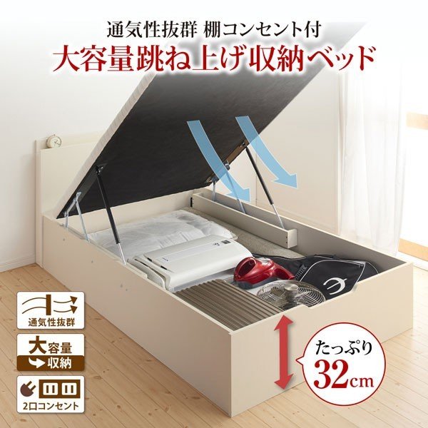 kag-54229 セミダブルベッド 一人暮らし フレーム 跳ね上げ式ベッド ガス圧 ベッド下 収納付き 大容量 宮 棚 携帯 収納 コンセント スマホ 充電 布団可 すのこ 通気性 カビ