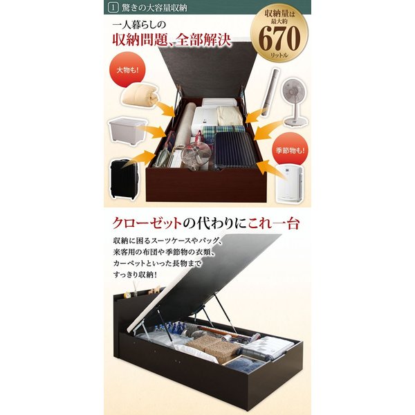 kag-54241 セミダブルベッド 一人暮らし マットレス付き 跳ね上げ式 ガス圧 ベッド下 収納付き 大容量 宮 棚 携帯 収納 コンセント スマホ 充電 布団可 すのこ 通気性 カビ