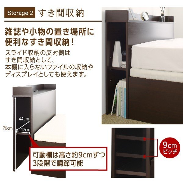 kag-54300 セミダブルベッド 一人暮らし マットレス付き 跳ね上げ式 ガス圧 ベッド下 収納付き 大容量 宮 棚 携帯 収納 コンセント スマホ 充電 布団可 すのこ 通気性 カビ