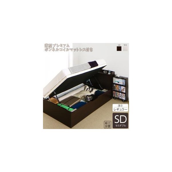 kag-54306 セミダブルベッド 一人暮らし マットレス付き 跳ね上げ式 ガス圧 ベッド下 収納付き 大容量 宮 棚 携帯 収納 コンセント スマホ 充電 布団可 すのこ 通気性 カビ