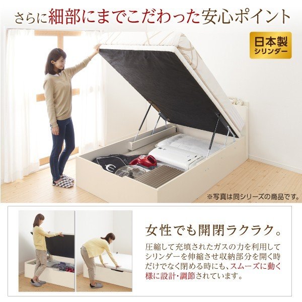 kag-54308 セミダブルベッド 一人暮らし マットレス付き 跳ね上げ式 ガス圧 ベッド下 収納付き 大容量 宮 棚 携帯 収納 コンセント スマホ 充電 布団可 すのこ 通気性 カビ
