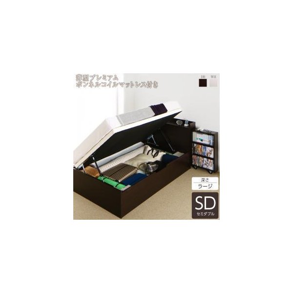 kag-54338 セミダブルベッド 一人暮らし マットレス付き 跳ね上げ式 ガス圧 ベッド下 収納付き 大容量 宮 棚 携帯 収納 コンセント スマホ 充電 布団可 すのこ 通気性 カビ