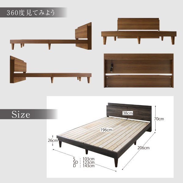 kag-54489 セミダブルベッド 一人暮らし マットレス付き ローベッド 低い 宮 棚 携帯 収納 コンセント スマホ 充電 布団可 すのこ 通気性 カビ 脚 足 ヴィンテージ