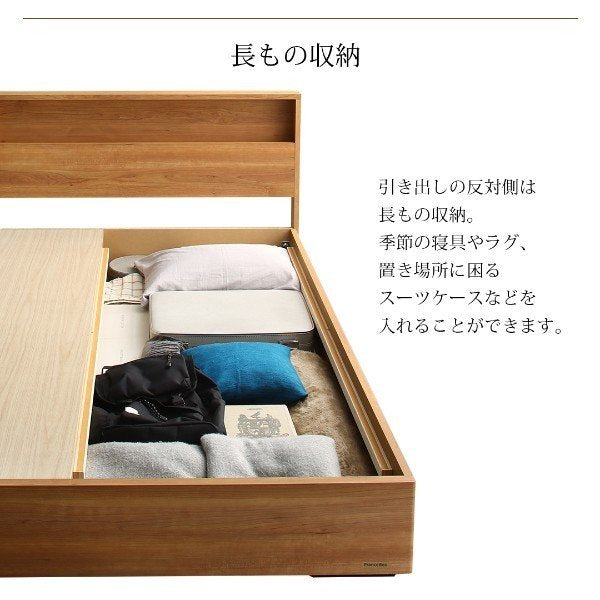 kag-54514 セミダブルベッド 一人暮らし フレームのみ チェスト ベッド下 収納 引き出し 大容量 宮 棚 携帯 照明 読書 ライト コンセント スマホ 充電 ヴィンテージ
