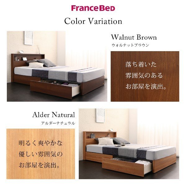 kag-54515 セミダブルベッド 一人暮らし マットレス付き チェスト ベッド下 収納 引き出し 大容量 宮 棚 携帯 照明 読書 ライト コンセント スマホ 充電 ヴィンテージ