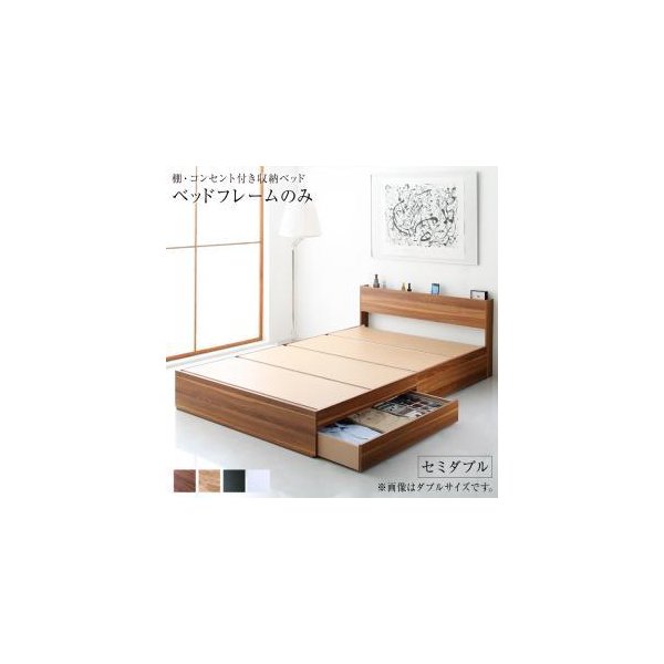 kag-54618 セミダブルベッド 一人暮らし SD フレームのみ チェストベッド ベッド下収納 引き出し 大容量 宮 棚 携帯 リモコン コンセント スマホ 充電 電気 ヴィンテージ
