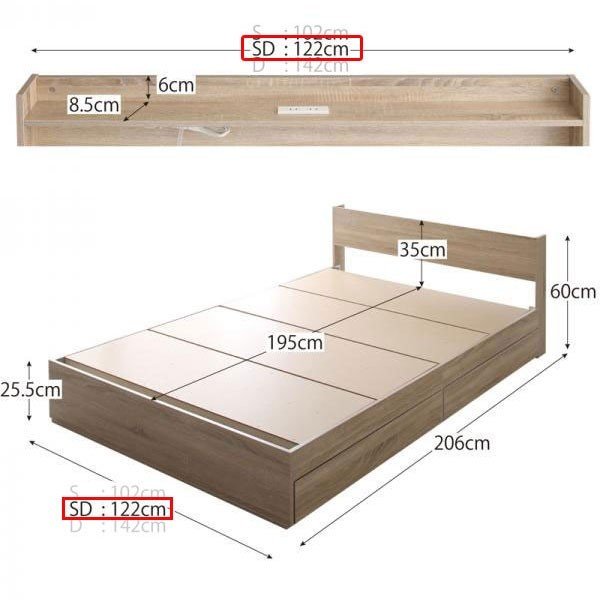 kag-54621 セミダブルベッド 一人暮らし SD マットレス付き チェストベッド ベッド下収納 引き出し 大容量 宮 棚 携帯 リモコン コンセント スマホ 充電 電気 ヴィンテージ
