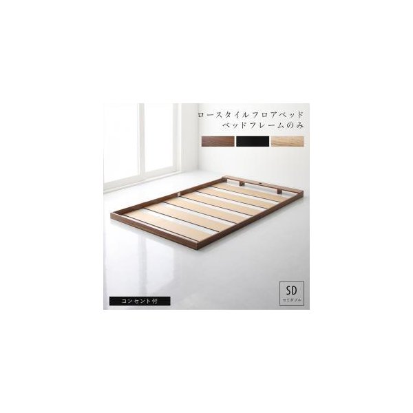 セミダブルベッド 一人暮らし SD フレームのみ ローベッド ロータイプ フロア 低床 低い ヘッドレス ヘッドボードなし コンセント ゲーム ケーブル 収納 スマホ 充電 電気 ヴィンテージ メンズ モダン レトロ