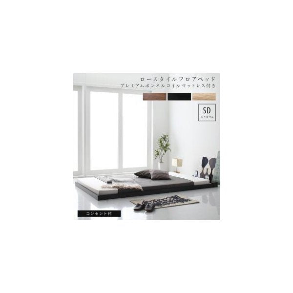 セミダブルベッド 一人暮らし SD マットレス付き ローベッド ロータイプ フロア 低床 低い ヘッドレス ヘッドボードなし コンセント ゲーム ケーブル 収納 スマホ 充電 電気 ヴィンテージ メンズ モダン レトロ