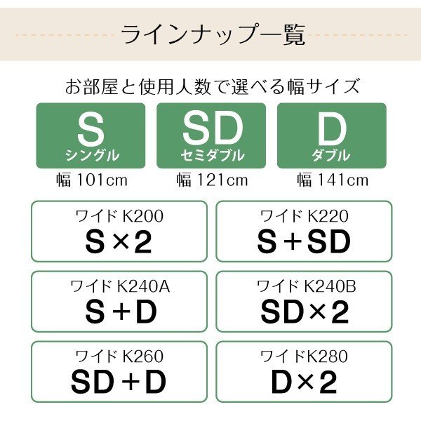 セミダブル:(約)122x31x5cm・6kg、8x202x29cm・13kg、114x48x10cm・12kg、117x103x15cm・35kg