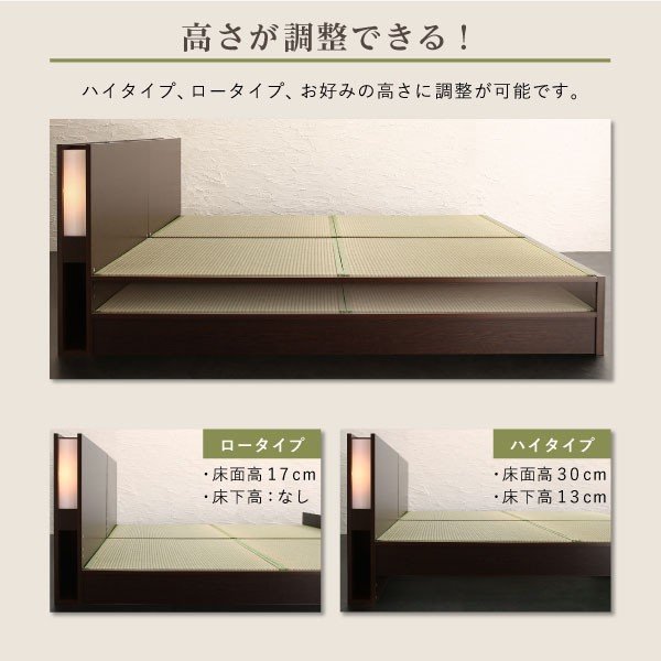 kag-54825 セミダブルベッド 一人 フレーム 畳 硬め 腰痛 通気性 カビ ベッド下 収納 高い 床下 全面 高さ調節 ロー 低い 棚 携帯 照明 ライト 携帯 スマホ コンセント