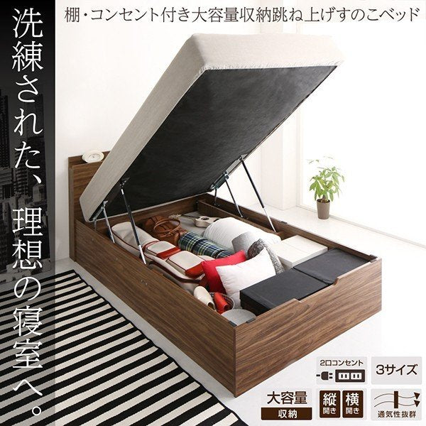 kag-54948 セミダブルベッド 一人暮らし マットレス付き 跳ね上げ式 ガス圧 ベッド下 収納付き 大容量 宮 棚 携帯 収納 コンセント スマホ 充電 すのこ 通気性 カビ