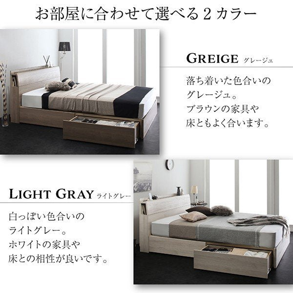 kag-54989 セミダブルベッド 一人暮らし フレーム チェスト ベッド下 収納 引き出し 大容量 宮 棚 携帯 照明 ライト コンセント スマホ 充電 北欧 おしゃれ アンティーク