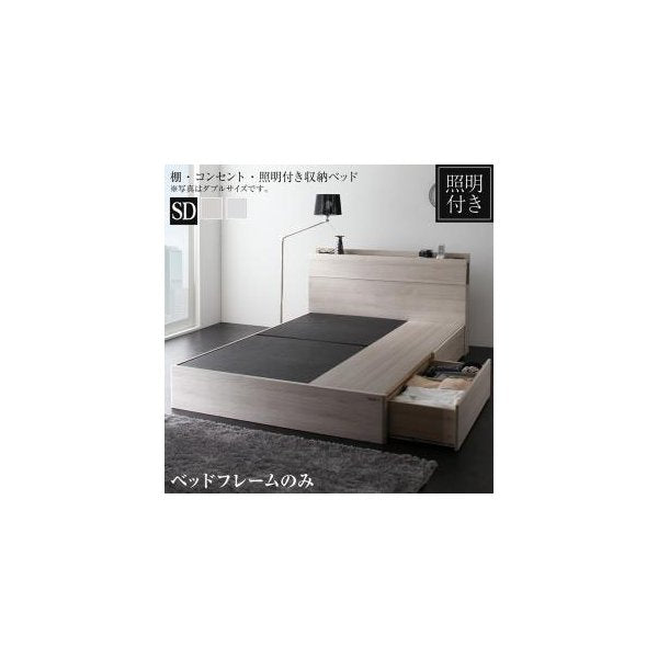 セミダブルベッド 一人暮らし SD フレームのみ チェストベッド ミドル ベッド下収納 引き出し付き 大容量 宮付き ヘッドボード 枕元 棚 ラック 携帯置き ティッシュ置き メガネ置き リモコン 頭上 収納 照明 読書灯 ライト 読書 電気 コンセント ゲーム ケーブル スマホ 充電 北欧 おしゃれ モダン アンティーク