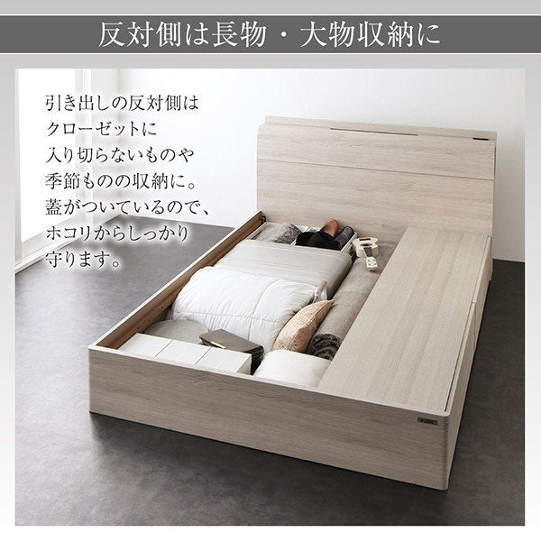 セミダブルベッド 一人暮らし SD マットレス付き チェストベッド ミドル ベッド下収納 引き出し付き 大容量 宮付き ヘッドボード 枕元 棚 ラック 携帯置き ティッシュ置き メガネ置き リモコン 頭上 収納 照明 読書灯 ライト 読書 電気 コンセント ゲーム ケーブル スマホ 充電 北欧 おしゃれ モダン アンティーク