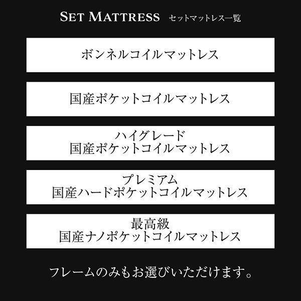 ※本製品はコイルマットレス使用時の基準で強度計算されております。床板の上に必ずコイルマットレスを敷いてご使用ください。