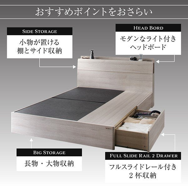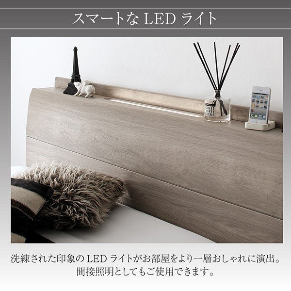 kag-55004 セミダブルベッド 一人暮らし マットレス付き チェスト 収納 引き出し 大容量 宮 棚 携帯 照明 ライト コンセント スマホ 充電 北欧 おしゃれ アンティーク