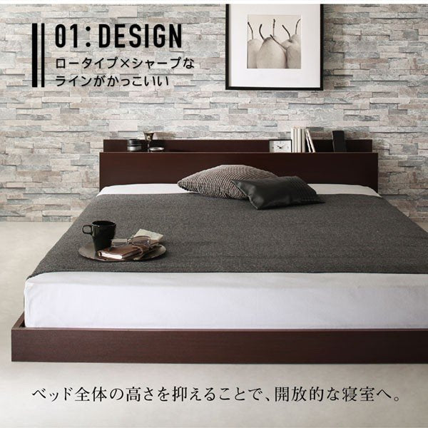 kag-55046 セミダブルベッド 一人暮らし SD マットレス付き ローベッド ロータイプ 低い 宮 棚 携帯 メガネ リモコン 収納 コンセント スマホ 充電 電気 ヴィンテージ